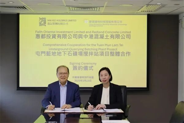 3月23日,华润建材科技旗下中港混凝土与香港惠记集团旗下惠皆投资在香港举行“屯门蓝地地下石矿场搅动站名堂”合营签约典礼。华润建材科技董事局主席景世青、副总裁潘飞、惠记集团主席单伟彪等出席关系作为。