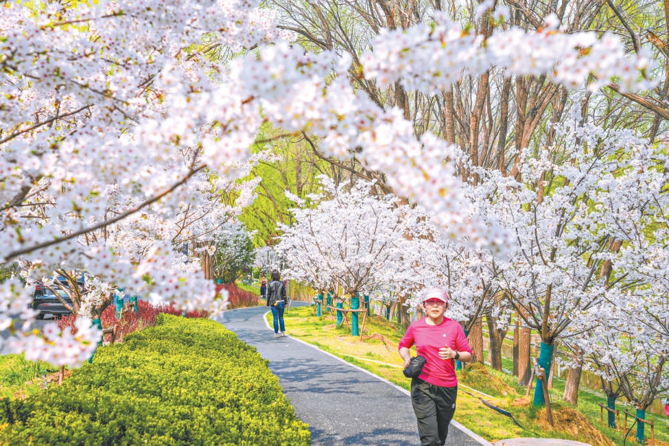 位于向阳区的北小河绿谈沿线,春日樱花盛放如云。本报记者武亦彬摄