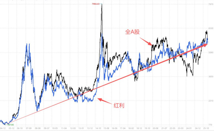 而红利股走强通常意味着熊市,比如2018年熊市、2022~2024年熊市。