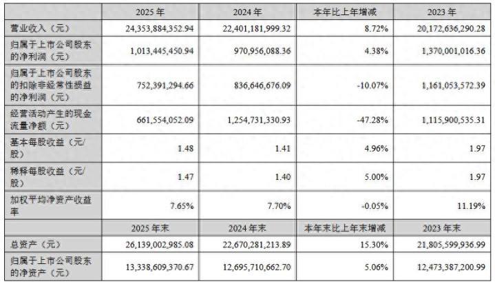 3月24日,视源股份发布2025年年度论说,公司贸易收入为243.54亿元,同比增长8.72%;包摄于上市公司股东的净利润为10.13亿元,同比增长4.38%。