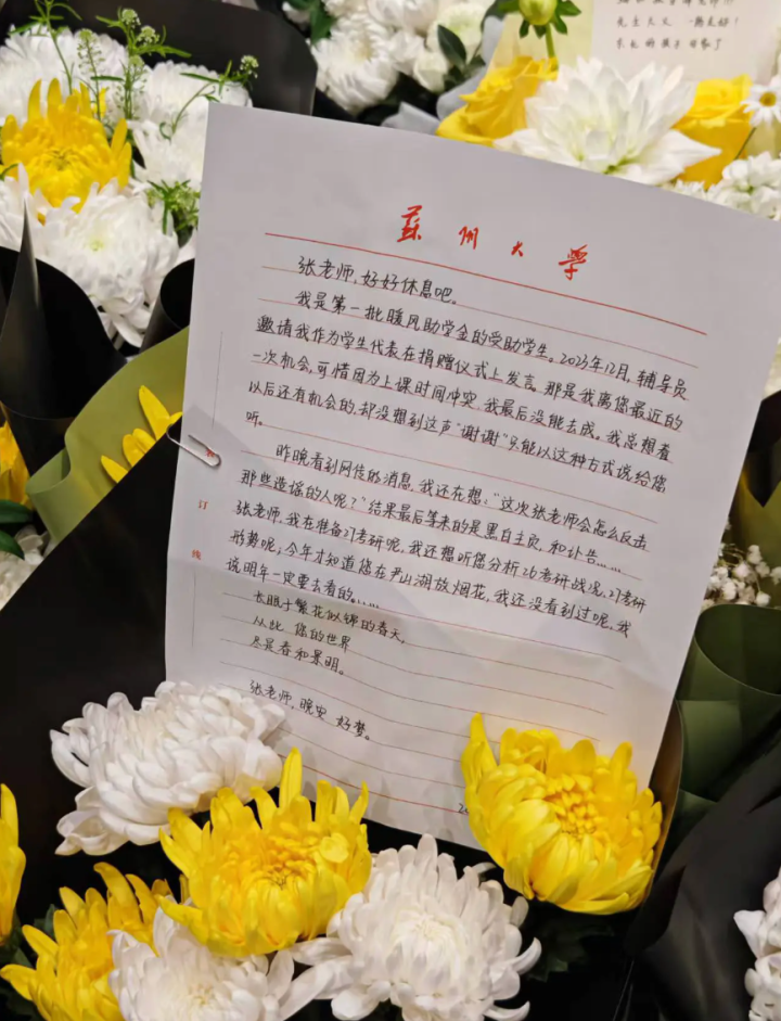 张雪峰真挚悲伤会将于本周六(28日)举行。今天的苏州天外颠倒阴千里,不少东谈主躬行赶到张雪峰公司楼下送花暗示悼念。