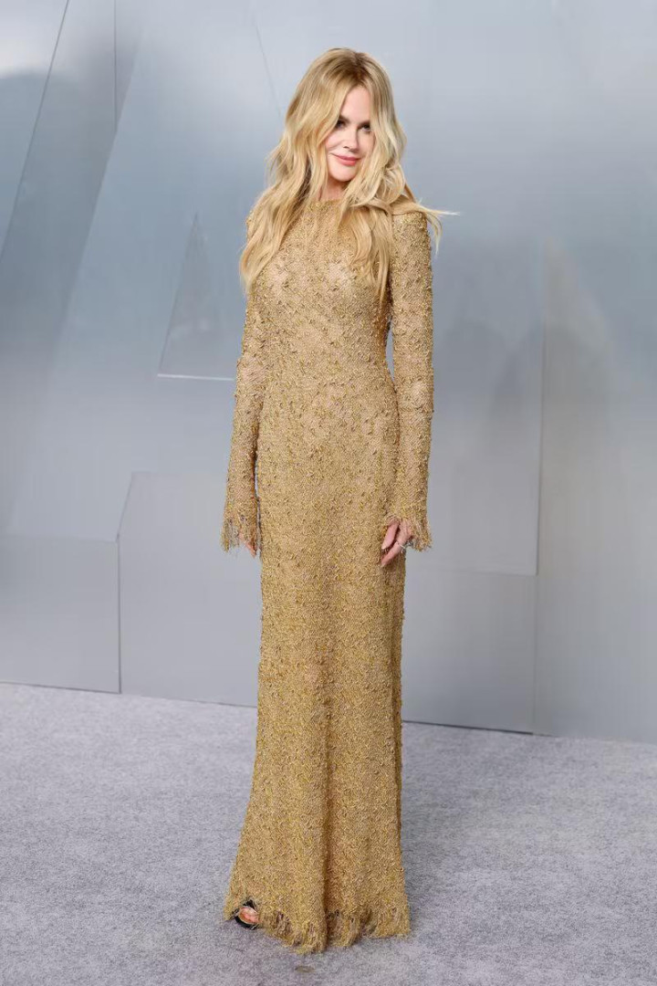 澳大利亚女演员妮可·基德曼身着金色晚礼裙,披垂着一头细心的金发,沉静不迫地走上了红毯,立时参预我方的拍照区域。