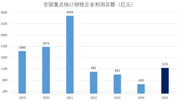 中钢协数据涌现,2025年要点统计钢铁企业终了利润总数1,151亿元,同比增幅高达168%,一扫2022年以来的劣势;同时平均销售利润率1.9%,同比亦有1.13个百分点的升迁。