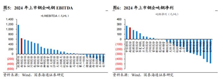 国泰海通证券曾作念过一份统计,2024年上市钢企中,南钢股份的吨钢净利润位居第二,仅次于中信特钢(000708.SZ),吨钢EBITDA一样是行业第二,仅次于抚顺特钢(600399.SH)。