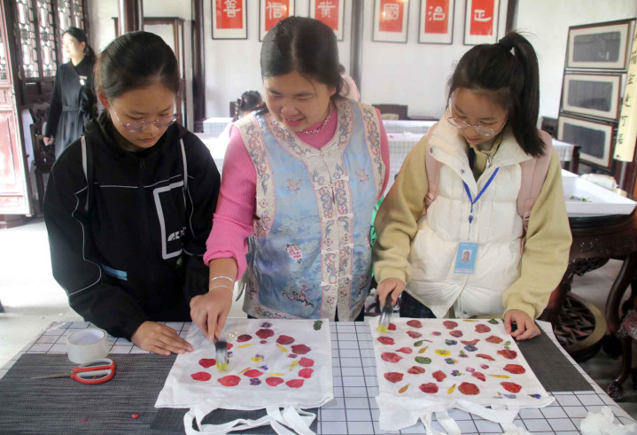 小九体育在线直播官网平台 江苏苏州: 可园举办“植物拓印”帆布袋行径 手作之好意思传新风