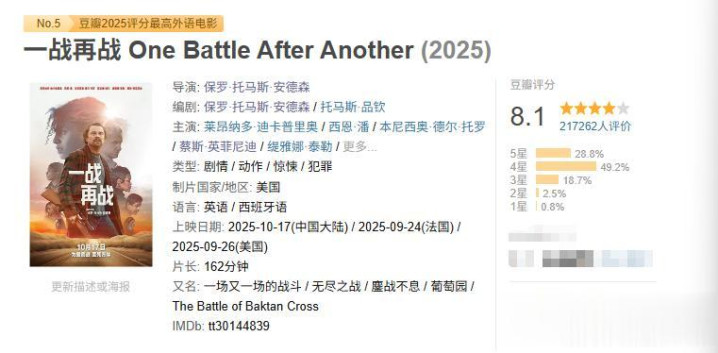 在《一战再战》获奖之后,基本上总共外洋媒体不雅点都是,实至名归,且是一个安妥影迷喜好的选择。