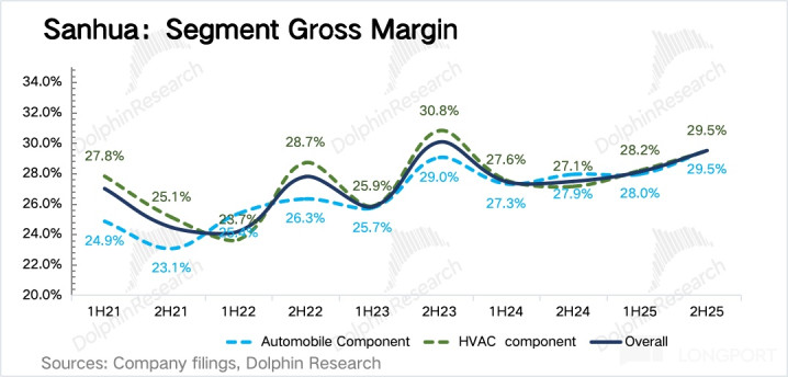 总体来看,尽管会受到原材料价钱的影响,但与国内业务比较,国外业务毛利率的确永远保捏较高水平,那么基于国外业务的企稳和彭胀,咱们觉得三花在盈利才略上梗概看护韧性且有进一步升迁空间。