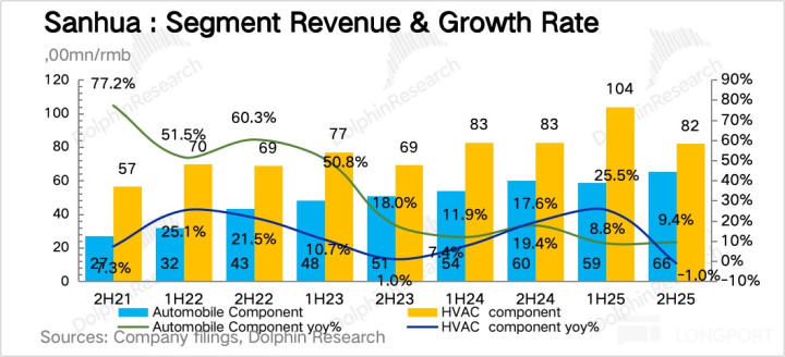 不外从同比增速上来看,三花汽车业务多元化过程其实可以:25 年第一大客户的占比仍是从 24 年的 12.6% 下降到接近 11%。