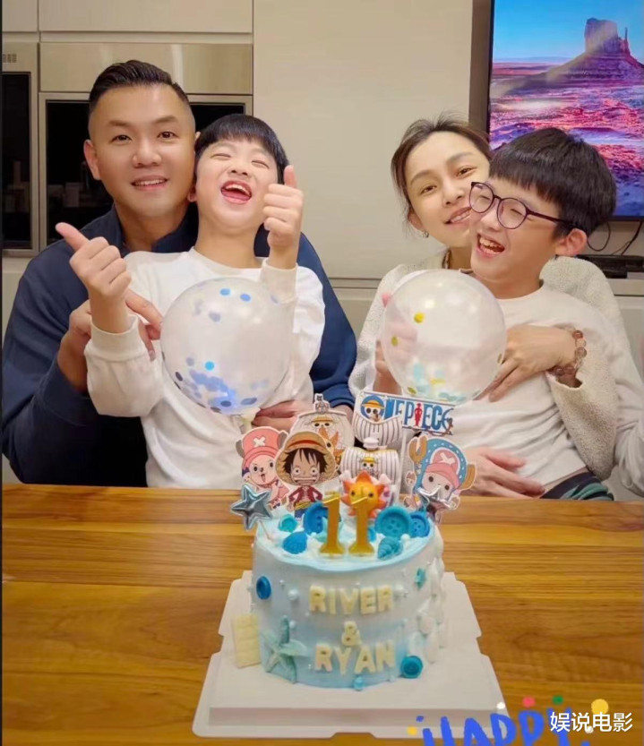 范玮琪50岁了,她晒出一家四口庆生照。