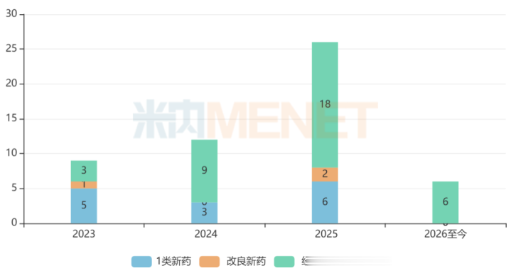 伴跟着政府部门明确的激勉计谋,药企的研发积极性也进一步提高。频年来获批上市的中成药新药数目正逐年增长,2025年获批的中成药达26个,较2024年竣事了翻倍增长。