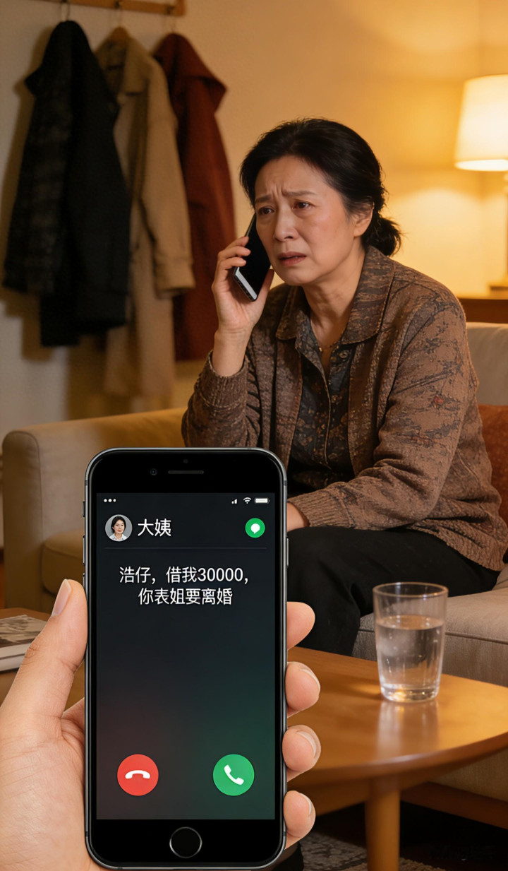 接起来,阿姨的声息又急又喘:“浩仔,你表姐要区分,借我30000块,她要请讼师。”