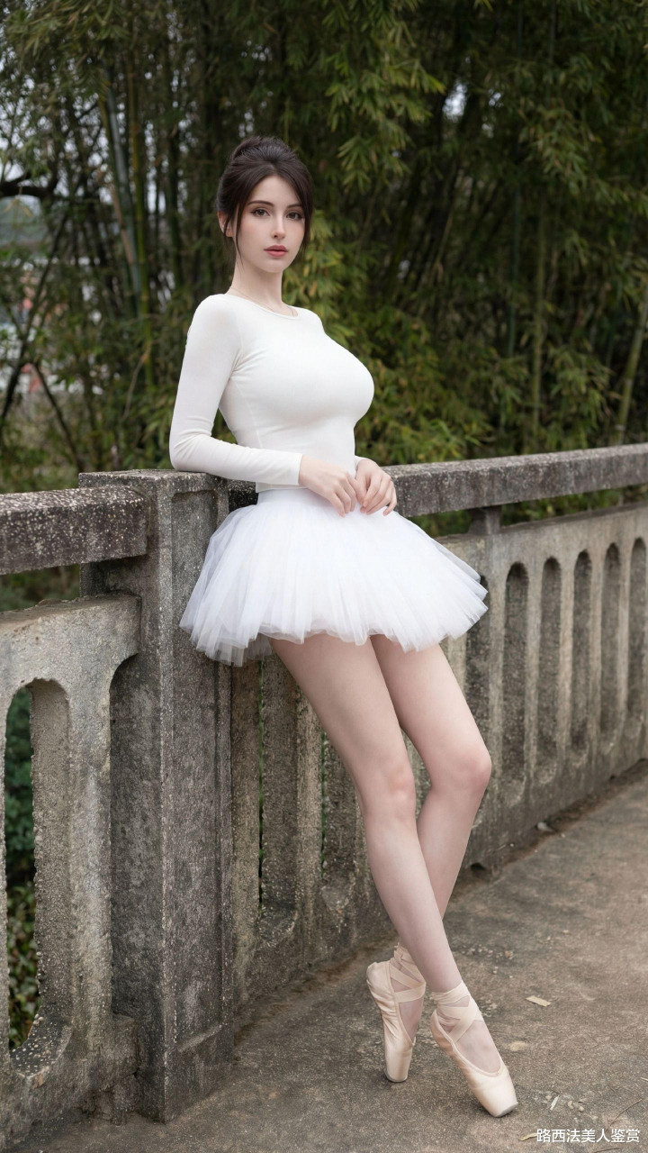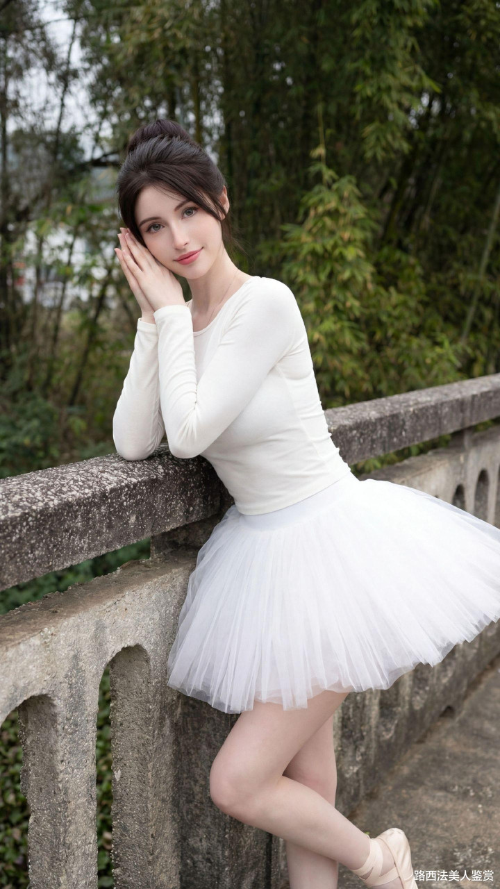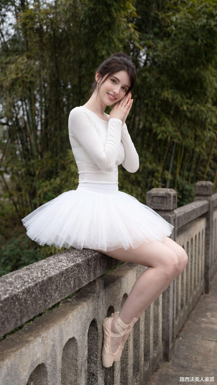 竹林旁的芭蕾佳东说念主,白裙足尖绽优雅