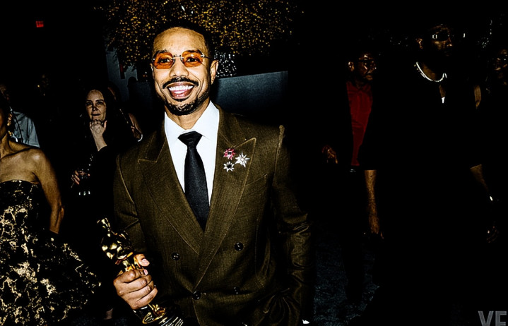 新科影帝迈克尔·B·乔丹手持奖杯简短亮相