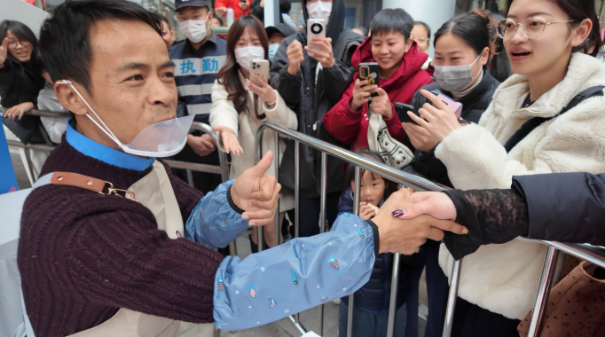 现场像在参与一场期待已久的互动上演,粉丝们请“鸡排哥”送祝颂、签名:考上大学、调查顺利、新年容许……