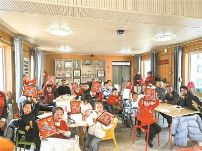 社区开展非遗手工进社区活动,组织辖区儿童与燕山大学留学生们共同创作青花瓷贴画。