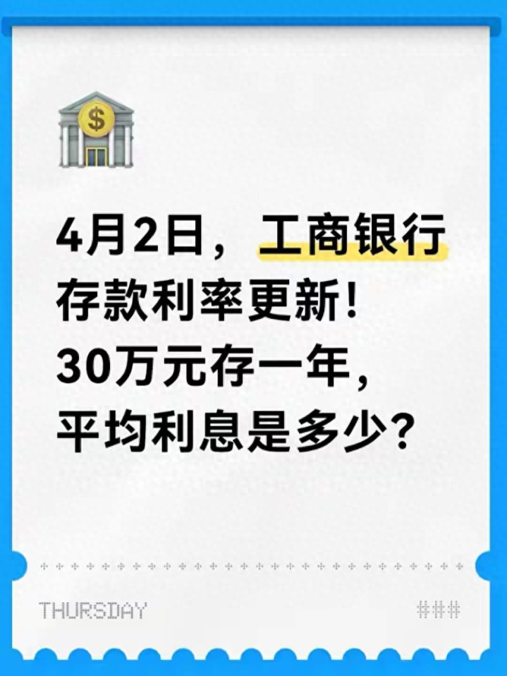 小九体育在线直播官网平台 4月2日, 工商银行进款利率更新! 30万元存一年, 平均利息是若干